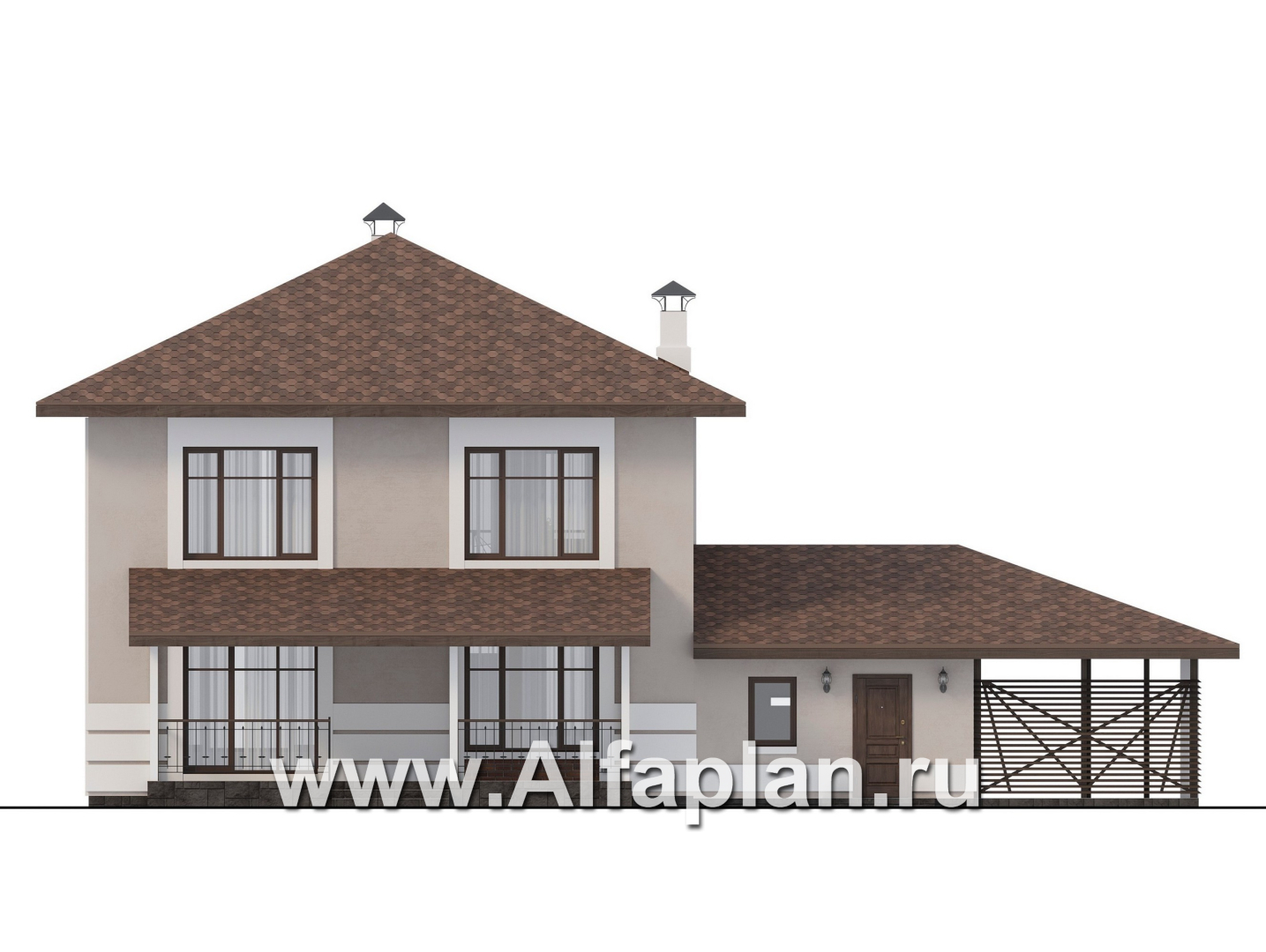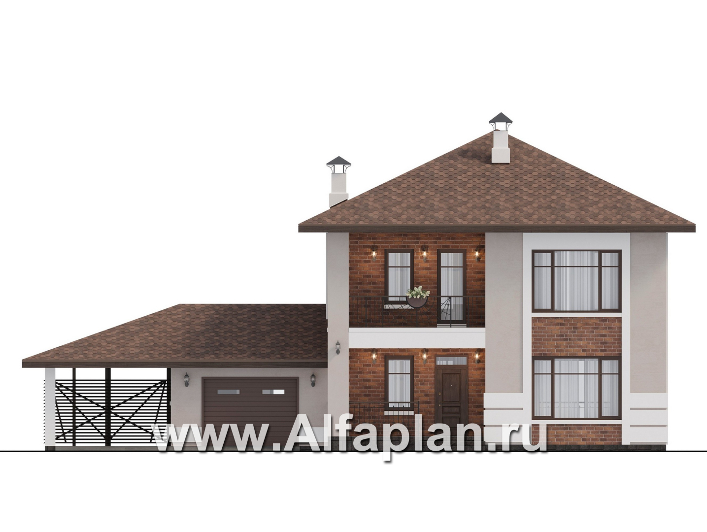 «Ладога» - проект двухэтажного дома из газобетона, с террасой, планировка с гаражом