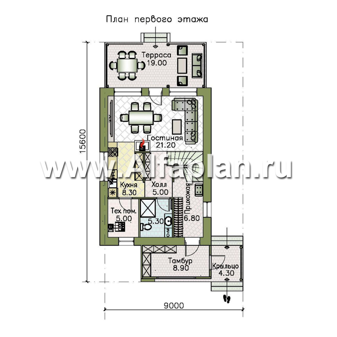 «Викинг» - проект дома, 2 этажа, с сауной и с террасой, в стиле хай-тек