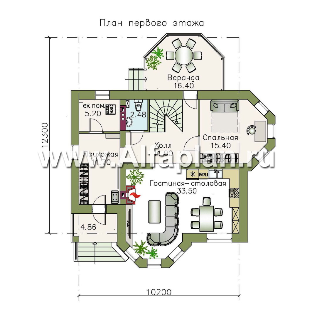 411A «Классика» - проект двухэтажного дома с эркером, планировка с кабинетом на 1 эт и с террасой