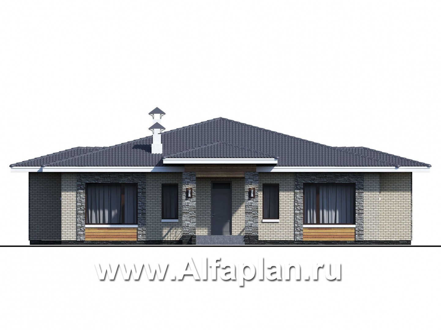 766A «Аккорд» - проект одноэтажного дома, квадрат в плане, с террасой, мастер спальня