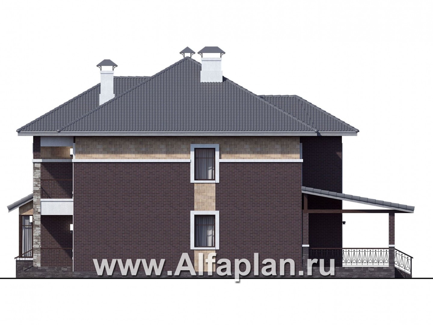 «Висла» — проект двухэтажного дома, особняк с двусветной столовой, с террасой
