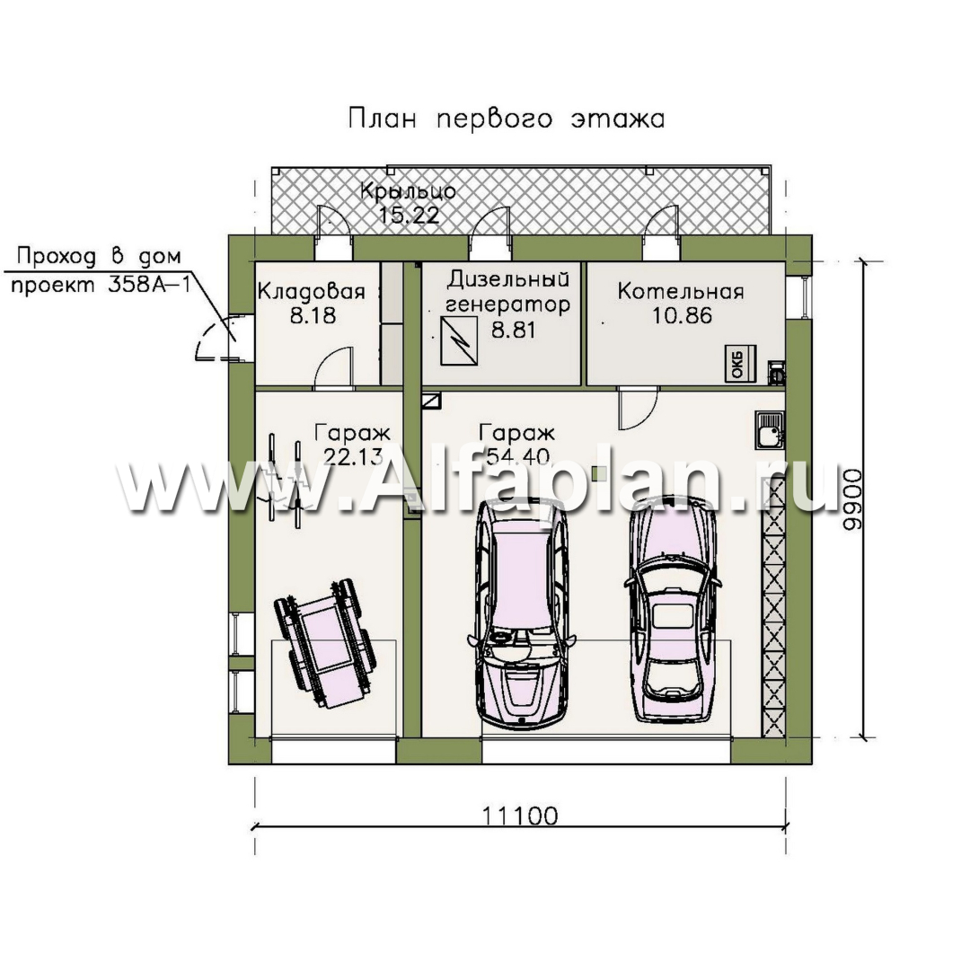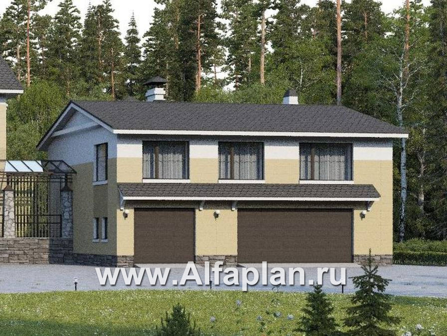 358A-2-S Проект вспомогательного дома, гостевой дом и гараж на 3 авто