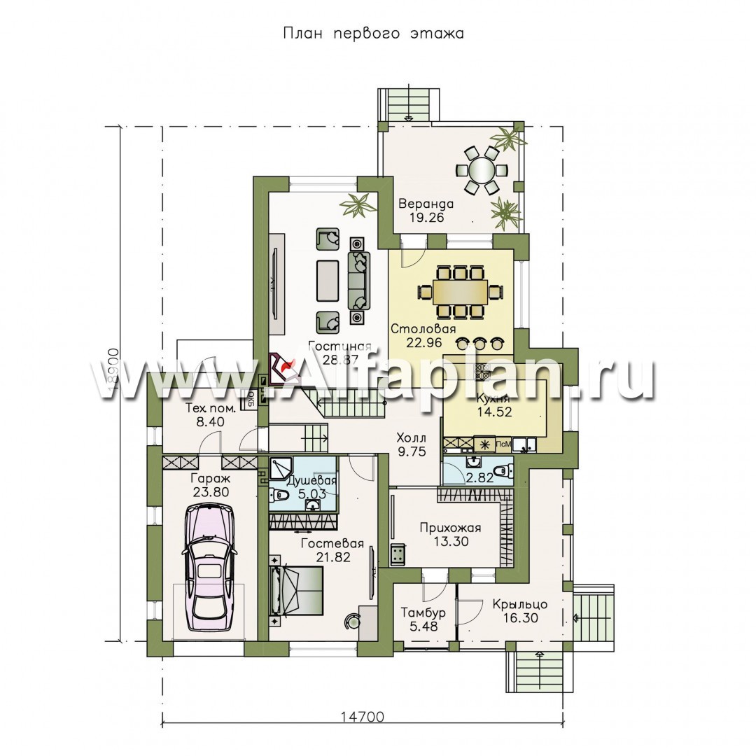 «Беатрис» - проект двухэтажного дома из кирпича, с террасой и с гаражом на 1 авто - технические характеристики
