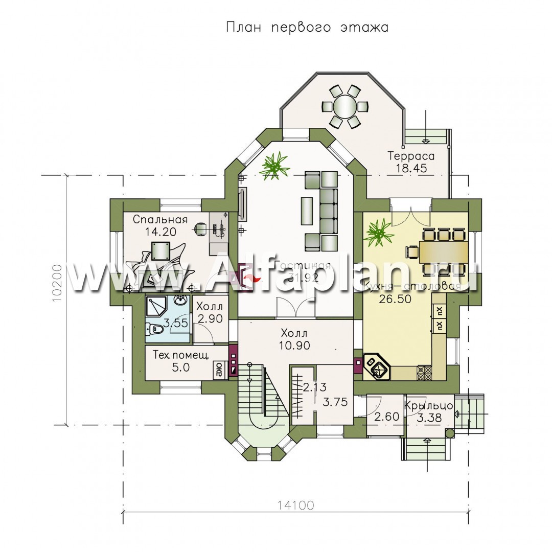 Здравствуйте!!! Пожалуйста, какие габаритные размеры гостинной. Можно ли использовать ленточный фундамент. Спасибо
