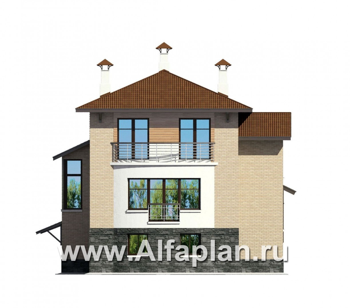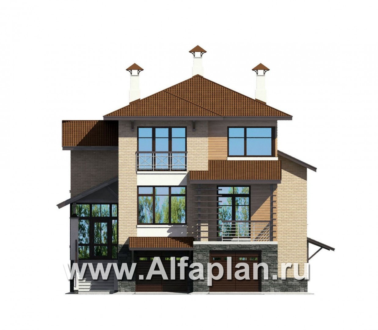 134B-S «Светлая жизнь» - проект трехэтажного дома из газобетона, с гаражоми сауной в цоколе, с панорамным остеклением