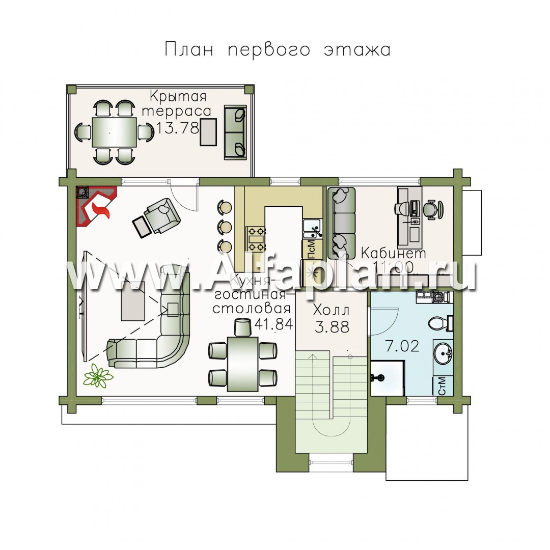 Площадь цокольного этажа 77.2 м²