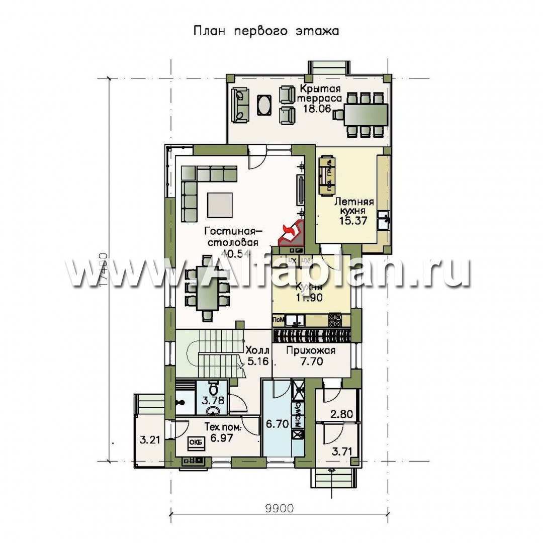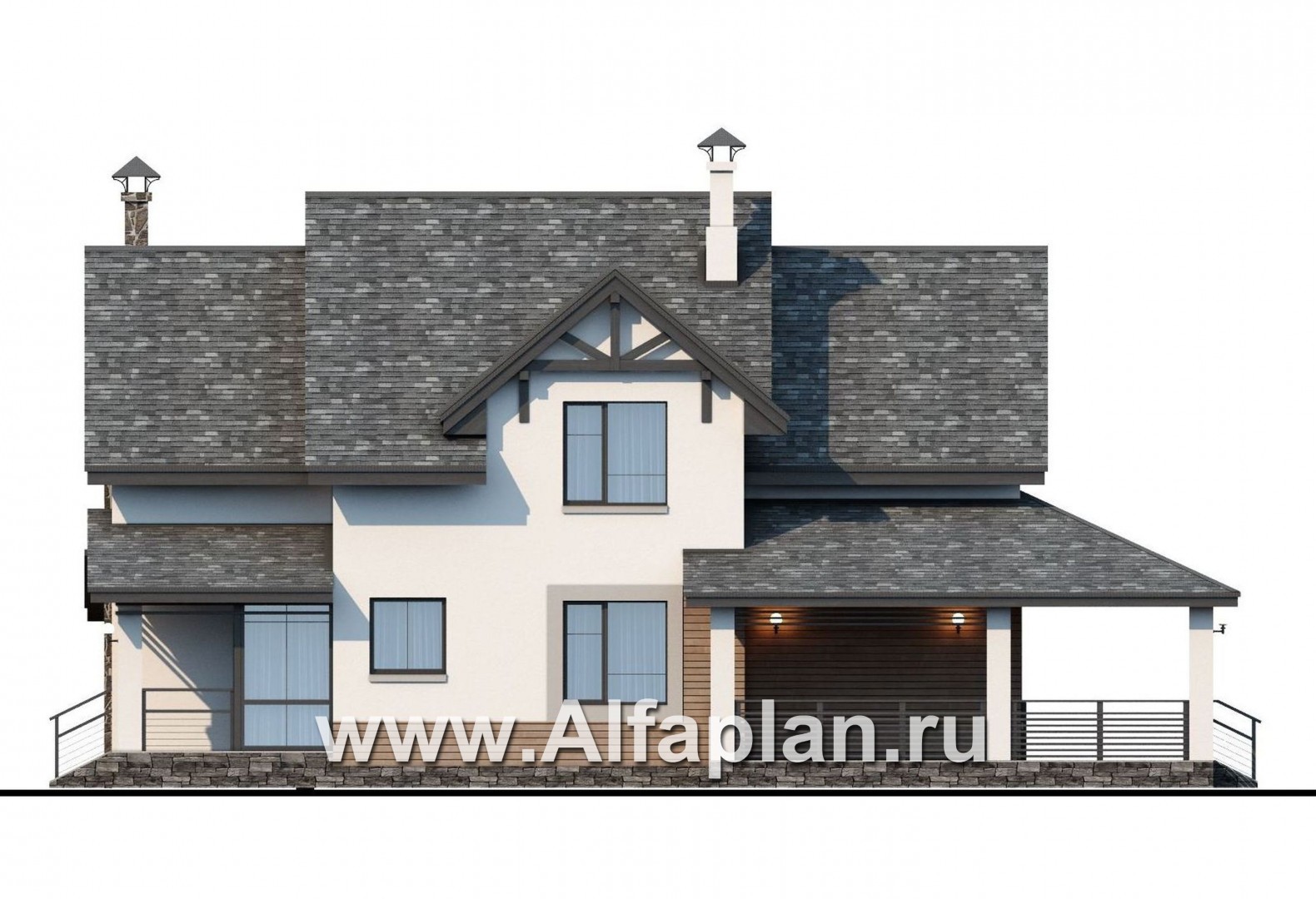 194A-S «Роза ветров» - проект двухэтажного коттеджа из газобетона, с террасой и с летней кухней, загородный дом в скандинавском стиле