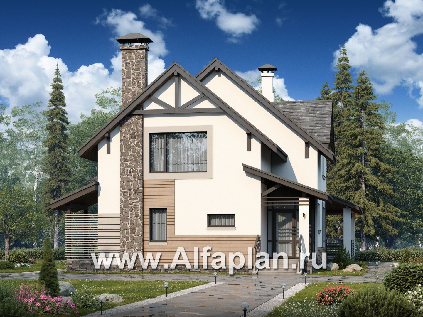 Проект коттеджа «Роза ветров» – образчик современного подхода к архитектуре. С одной стороны – четкие параллели со средневековыми традициями. Светлые оштукатуренные поверхности в сочетании с контрастными внешними сваями, подчеркивающими геометрию кровли, напоминают о знаменитых фахверковых конструкциях. Декоративные элементы, выполненные из крупного рустового камня, также ассоциируются с монументализмом, весомостью средневековой архитектуры. С другой стороны – устремленность вверх, легкость, подчеркнутая декоративными элементами из дерева. И, конечно, восхитительная небрежность асимметрии, причем касается это как особенностей дизайна фасада, так и тонкостей расположения архитектурных элементов.
