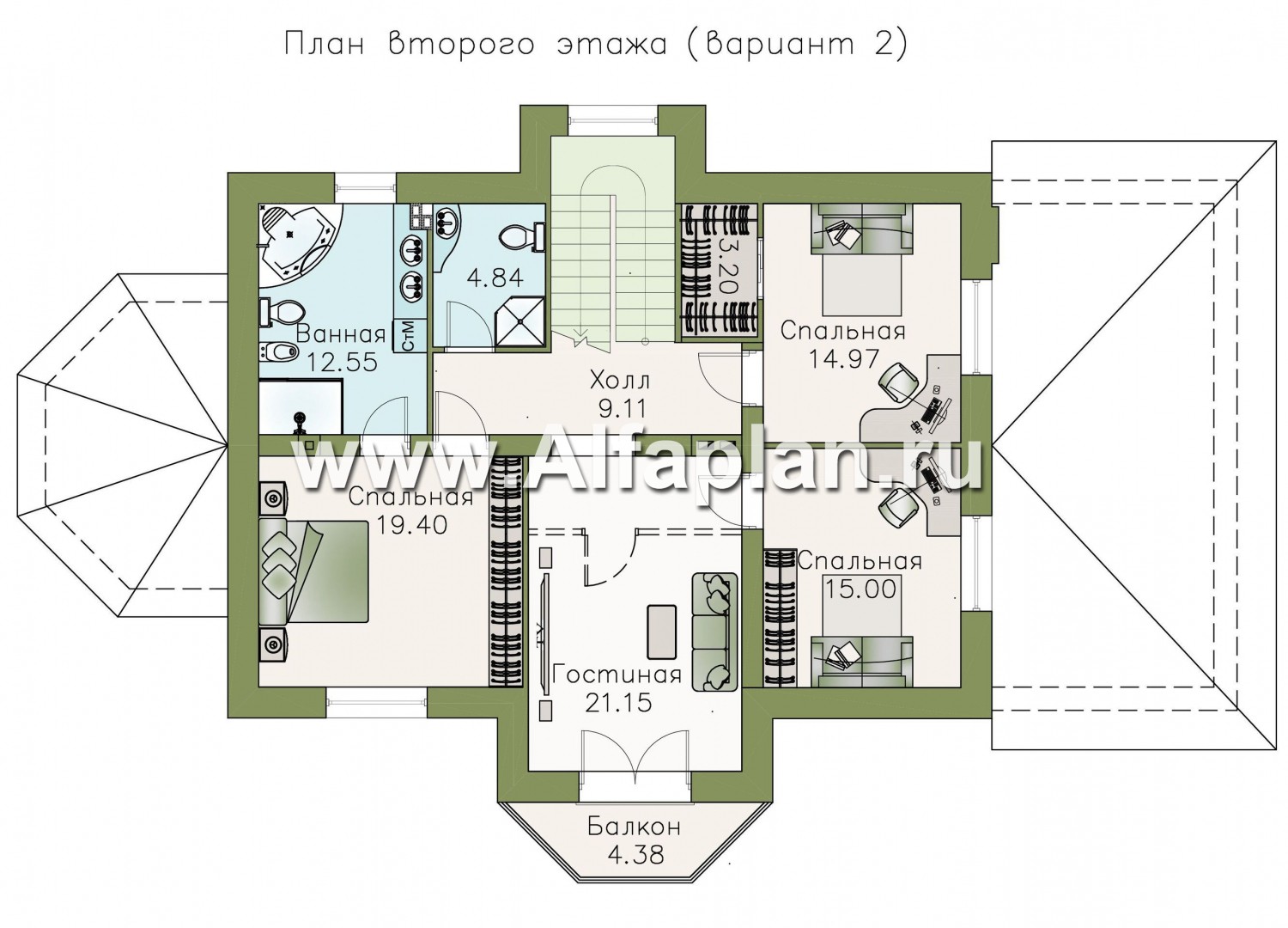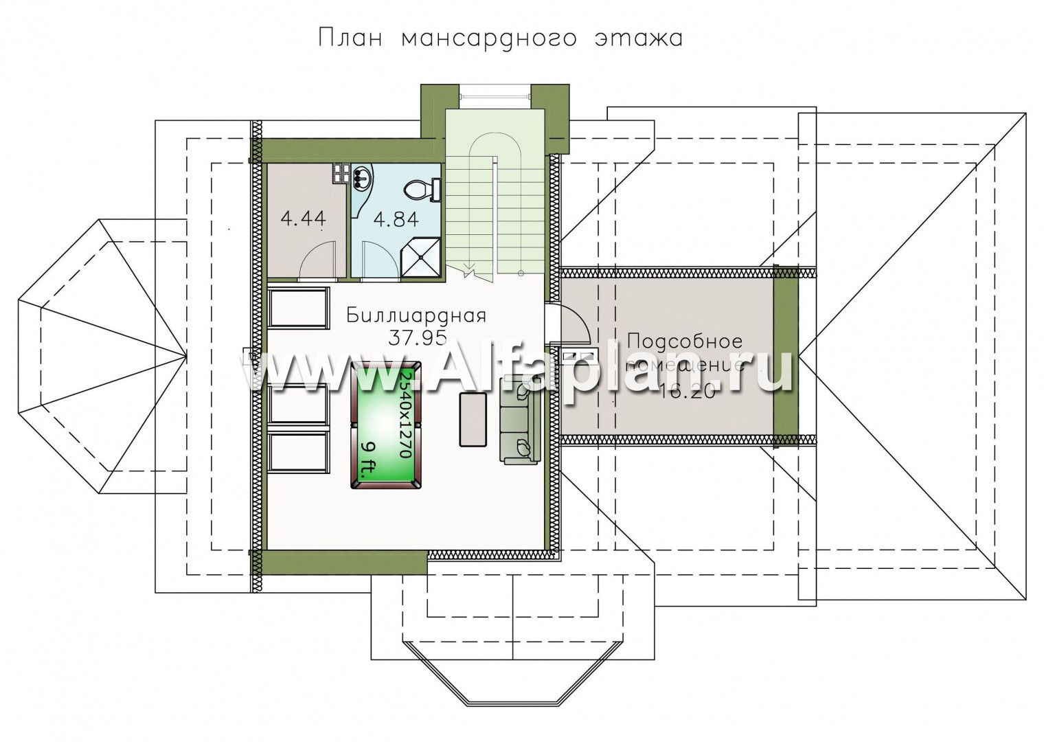 Площадь мансарды 63.47 м²