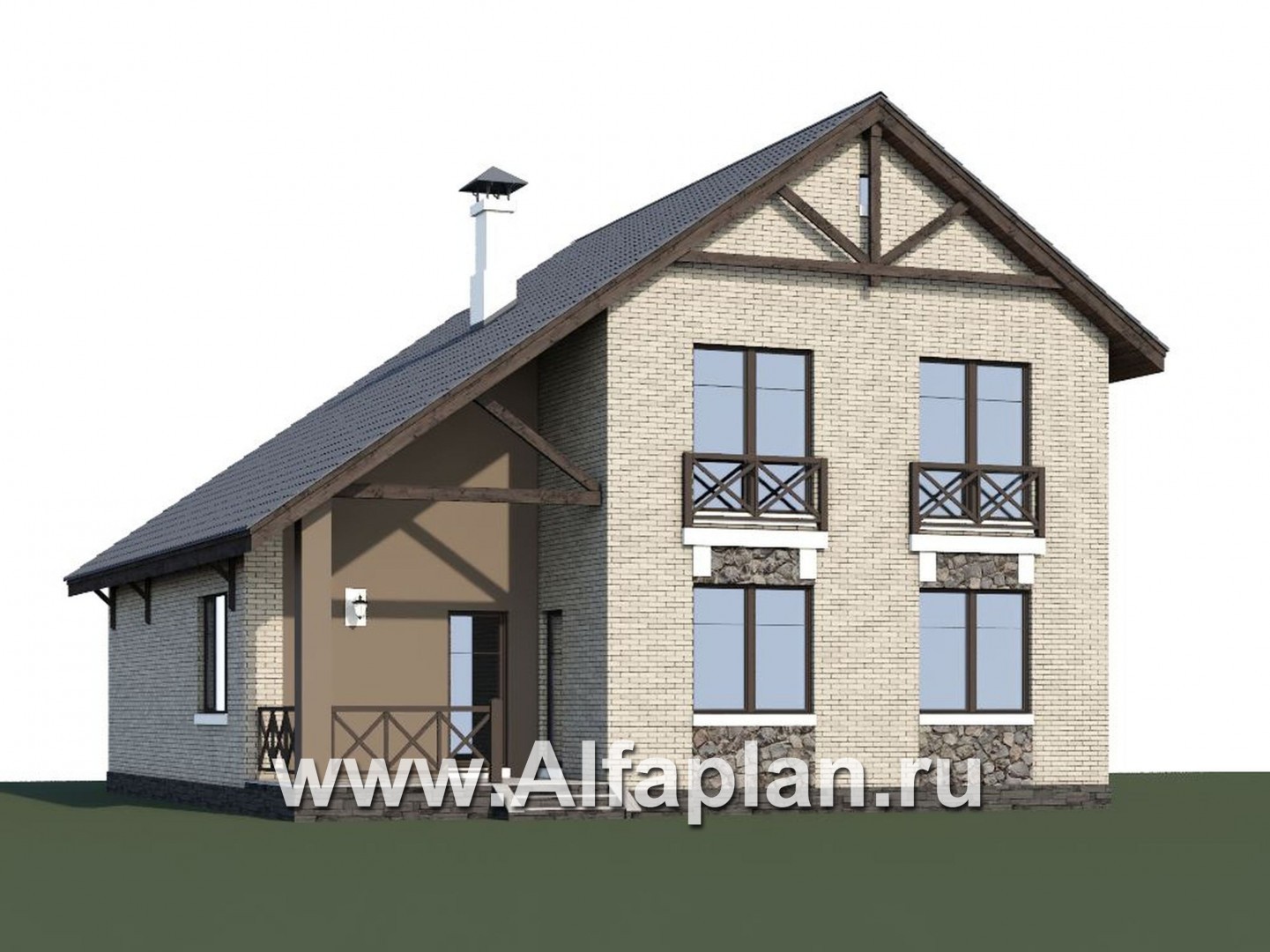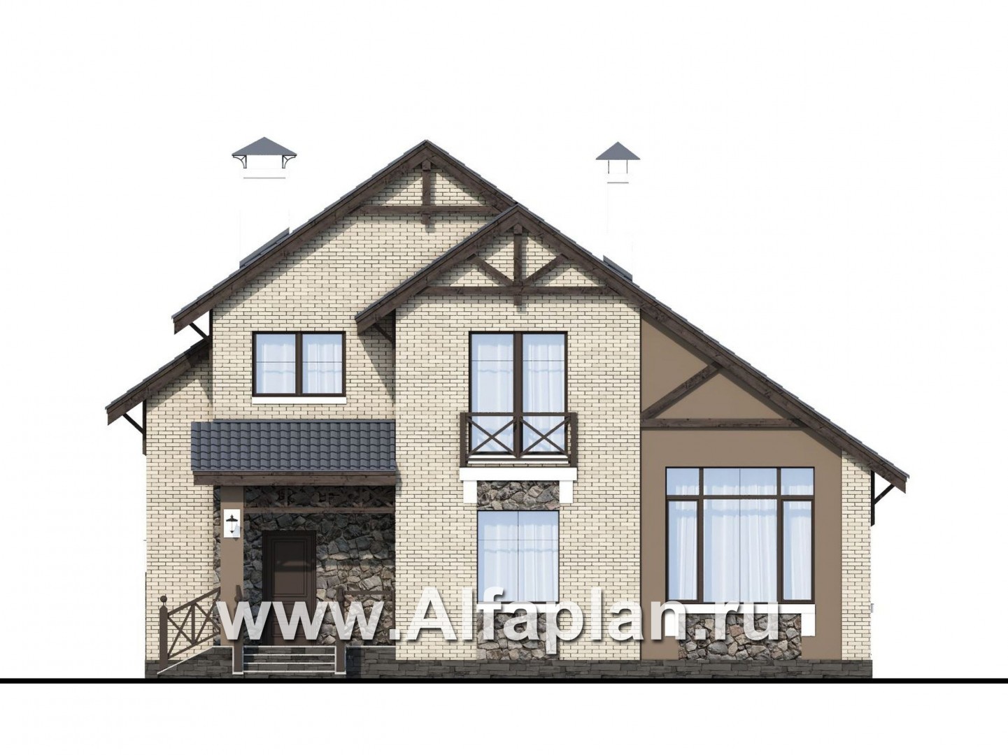 153B-S «Простор» - проект двухэтажного дома из кирпича, планировка с высокой гостиной, в американском стиле