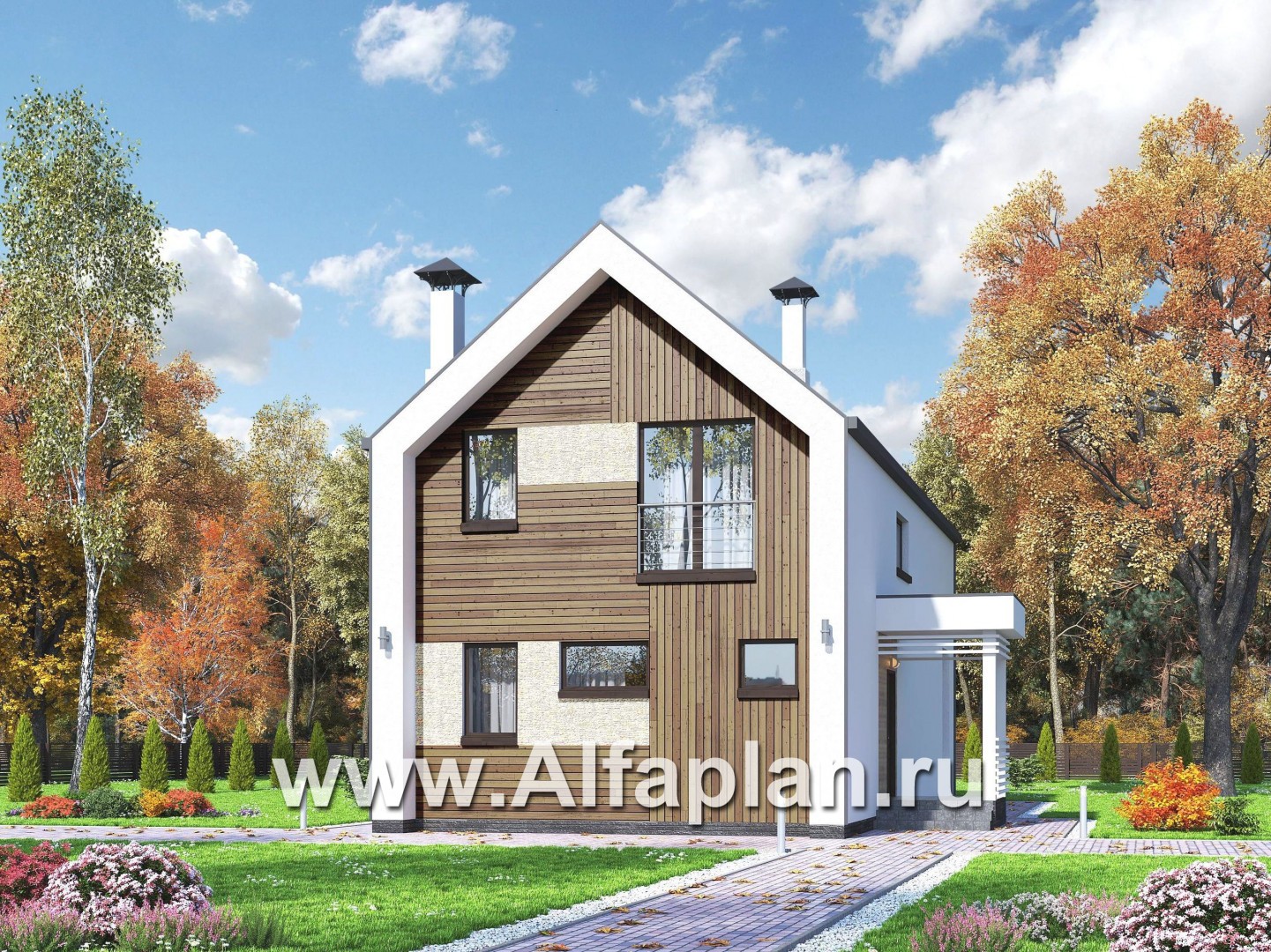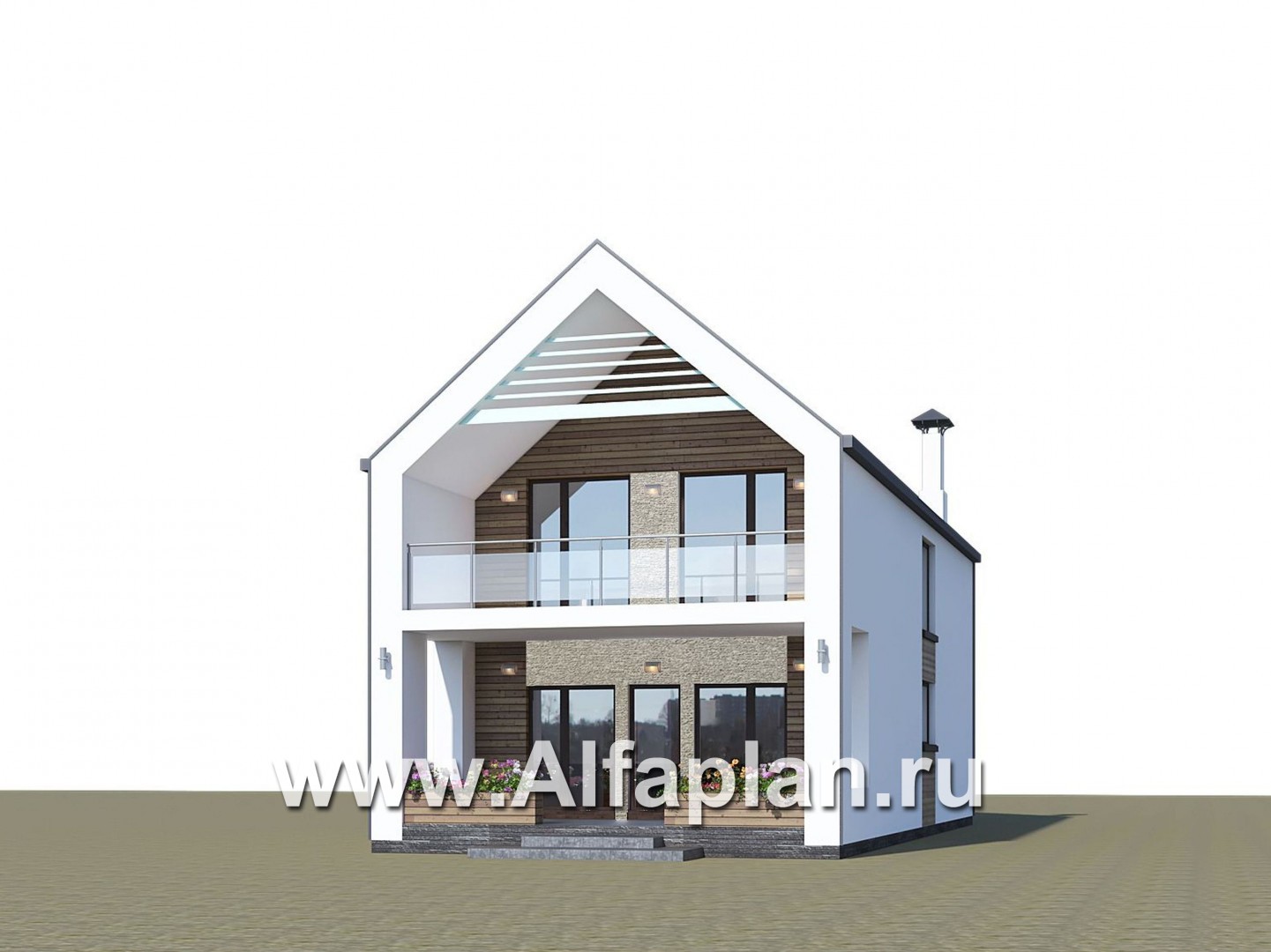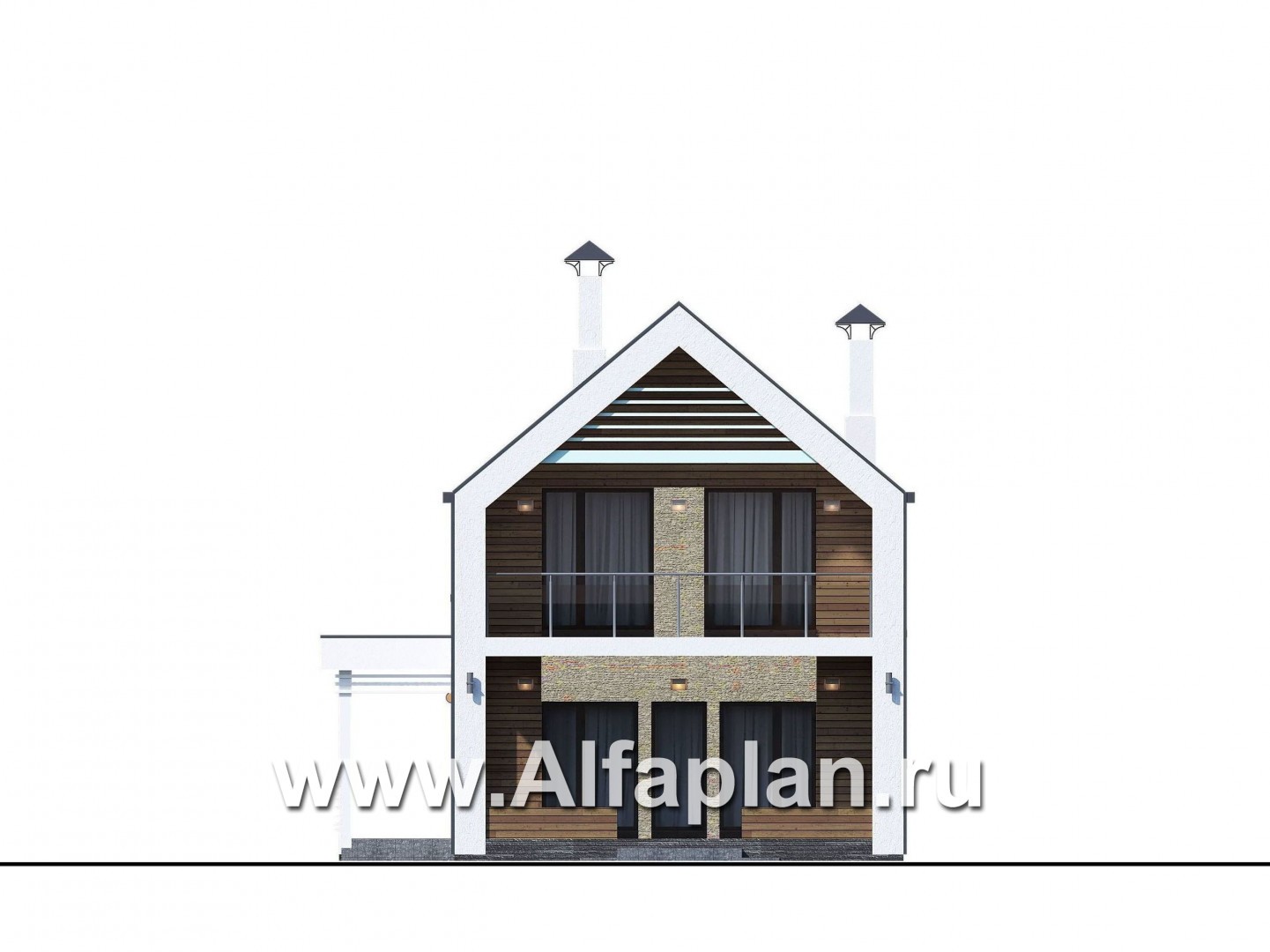 «Барн» - проект дома с мансардой, современный стиль барнхаус, с сауной, террасой и балконом