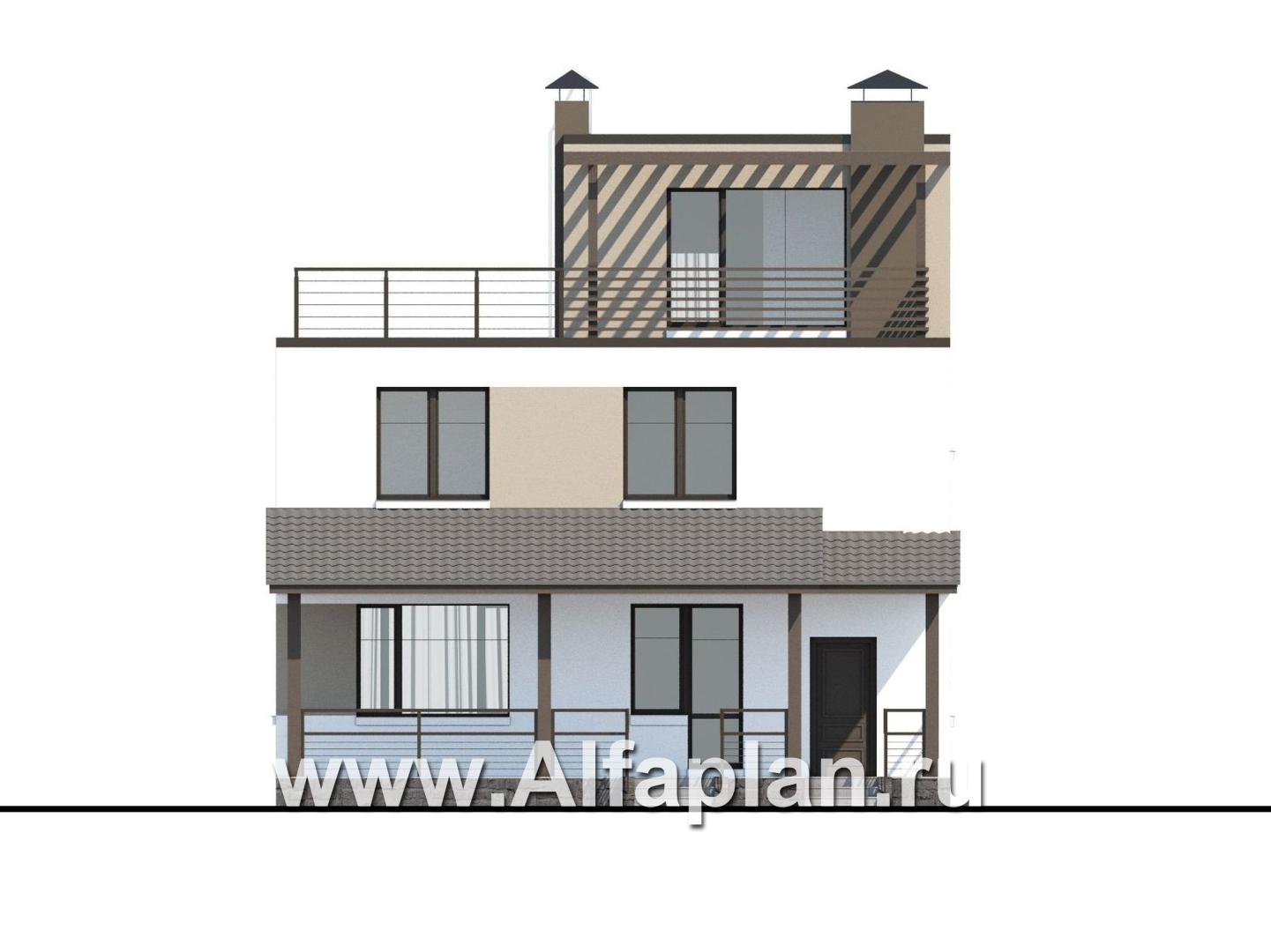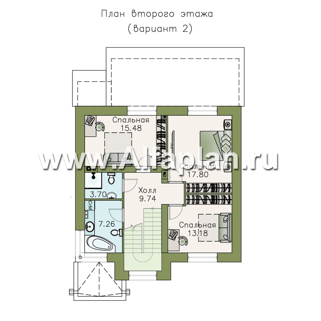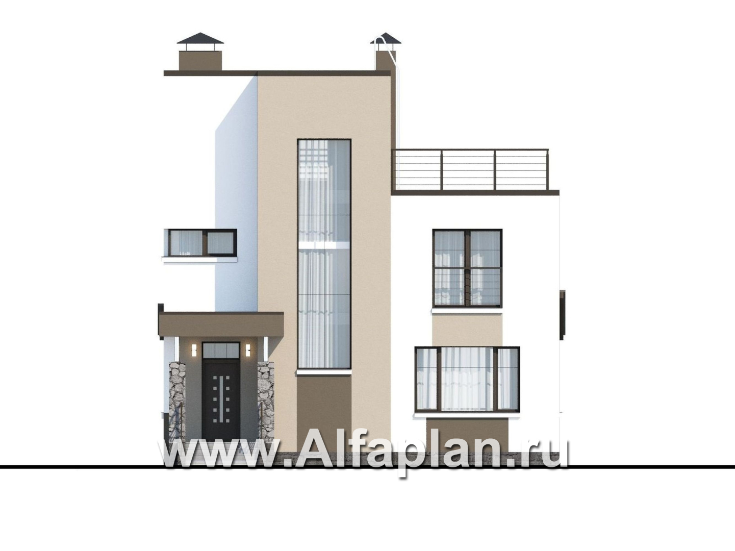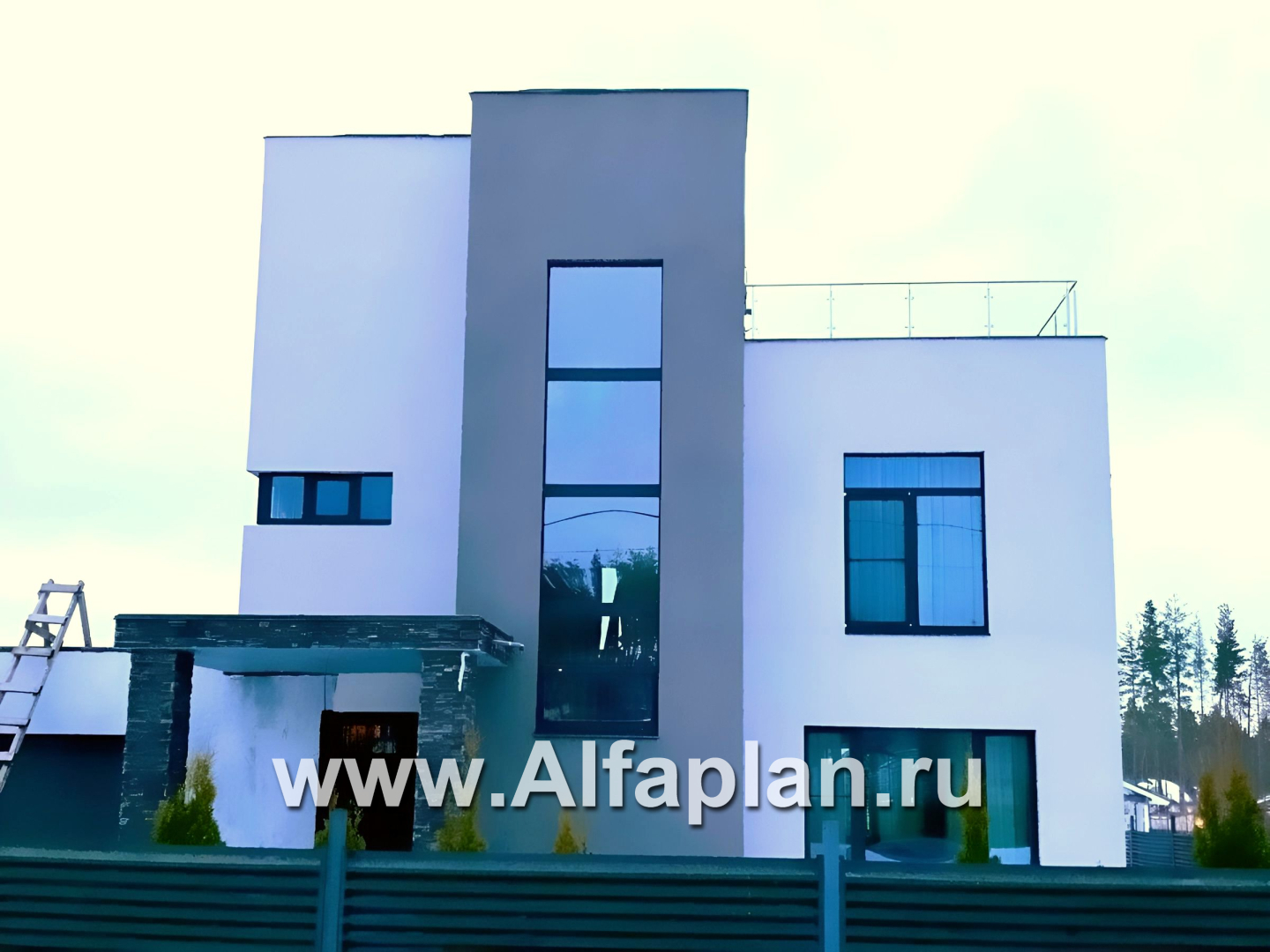 385A «Приоритет» - проект двухэтажного дома из газобетона, с открытой планировкой, с эксплуатируемой крышей, в стиле хай-тек