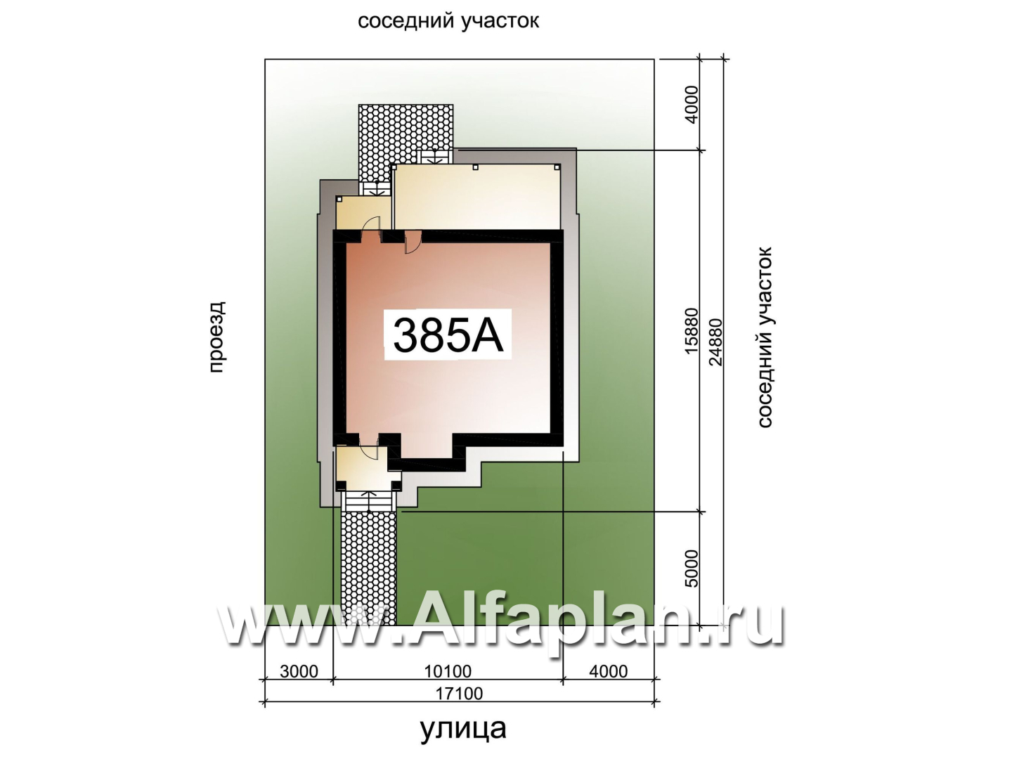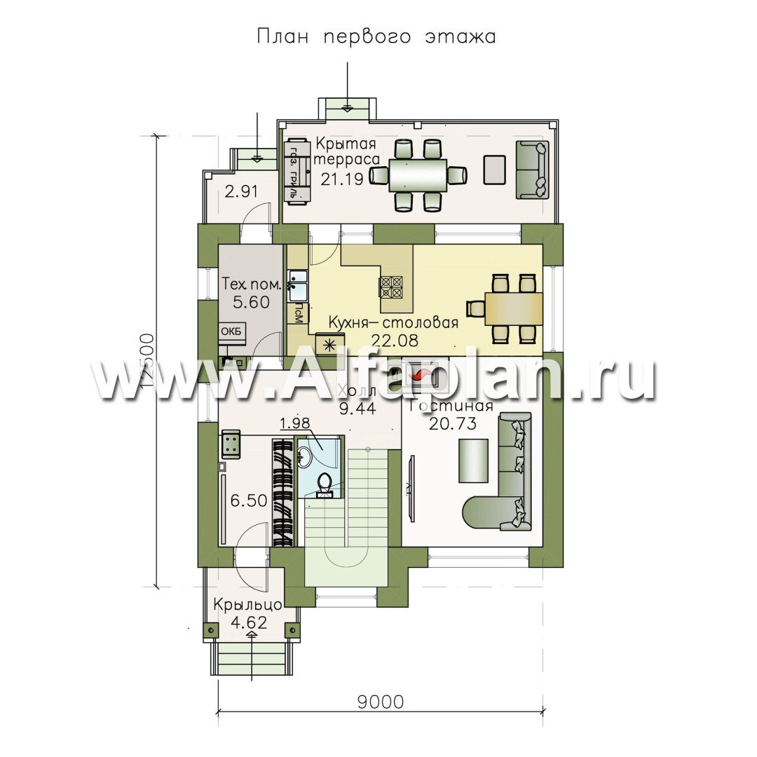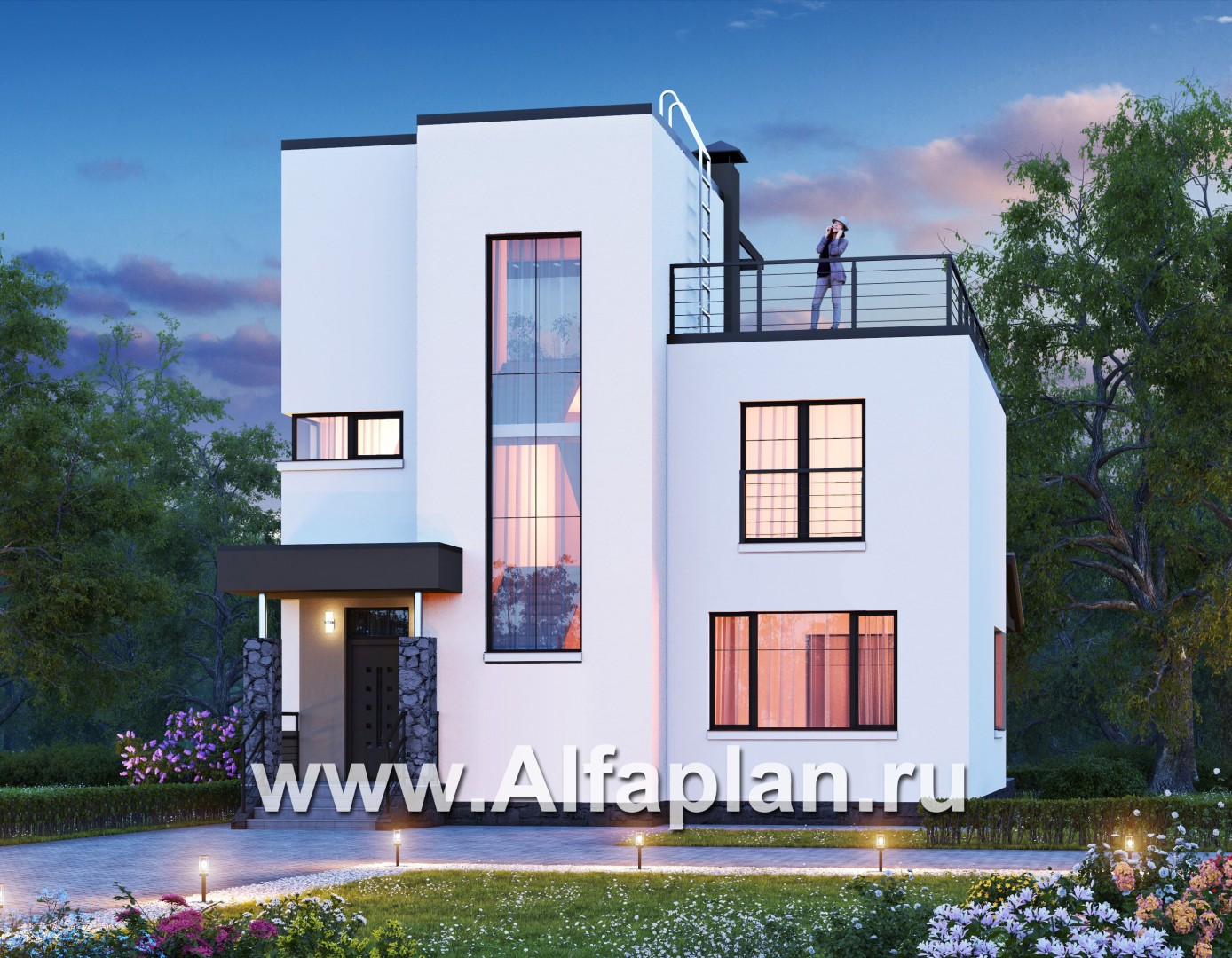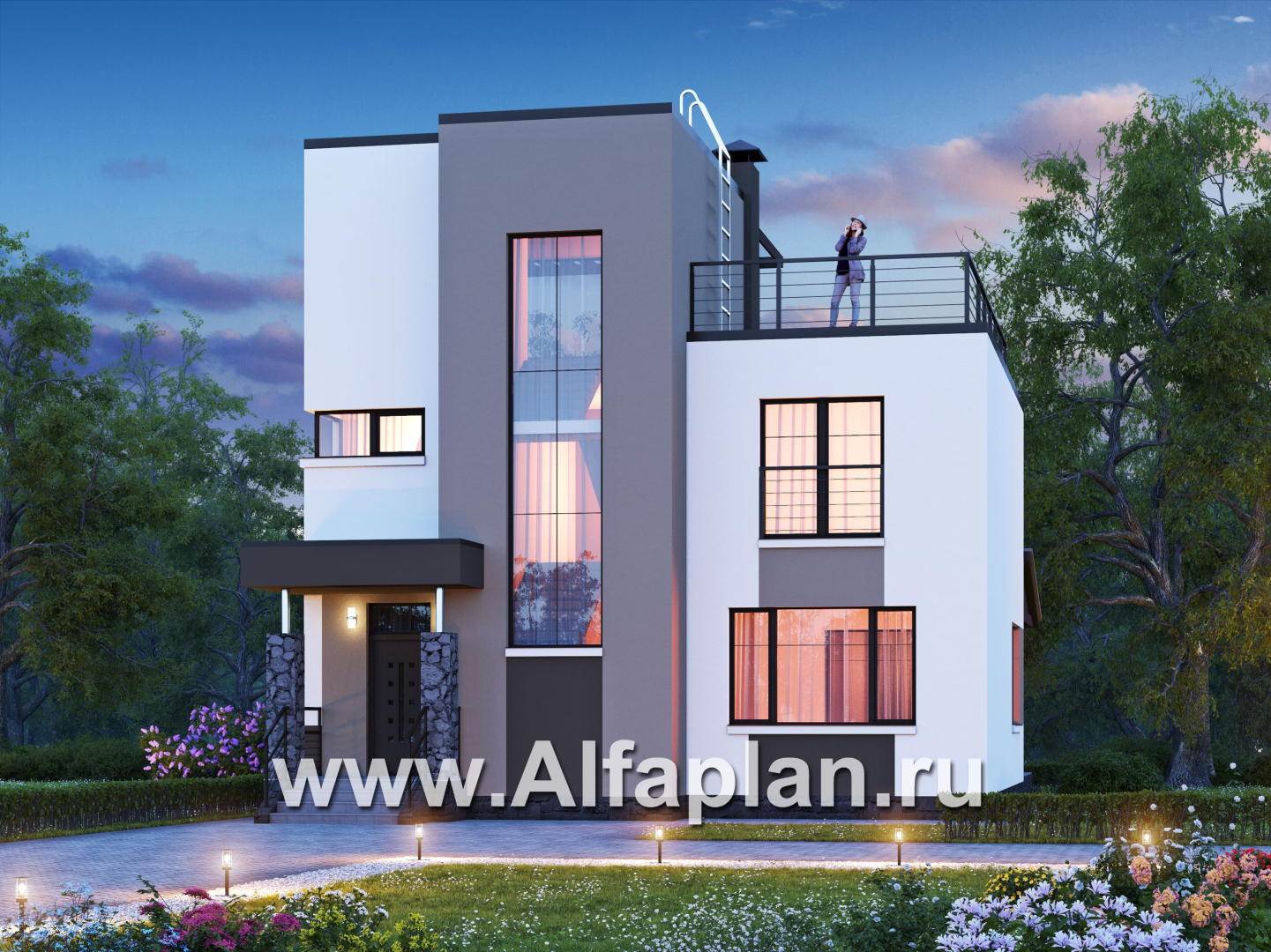 385A «Приоритет» - проект двухэтажного дома из газобетона, с открытой планировкой, с эксплуатируемой крышей, в стиле хай-тек