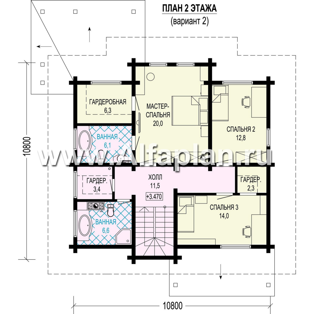 G200 Проект двухэтажного дома из клееного бруса, планировка со спальней на 1 эт, с террасой