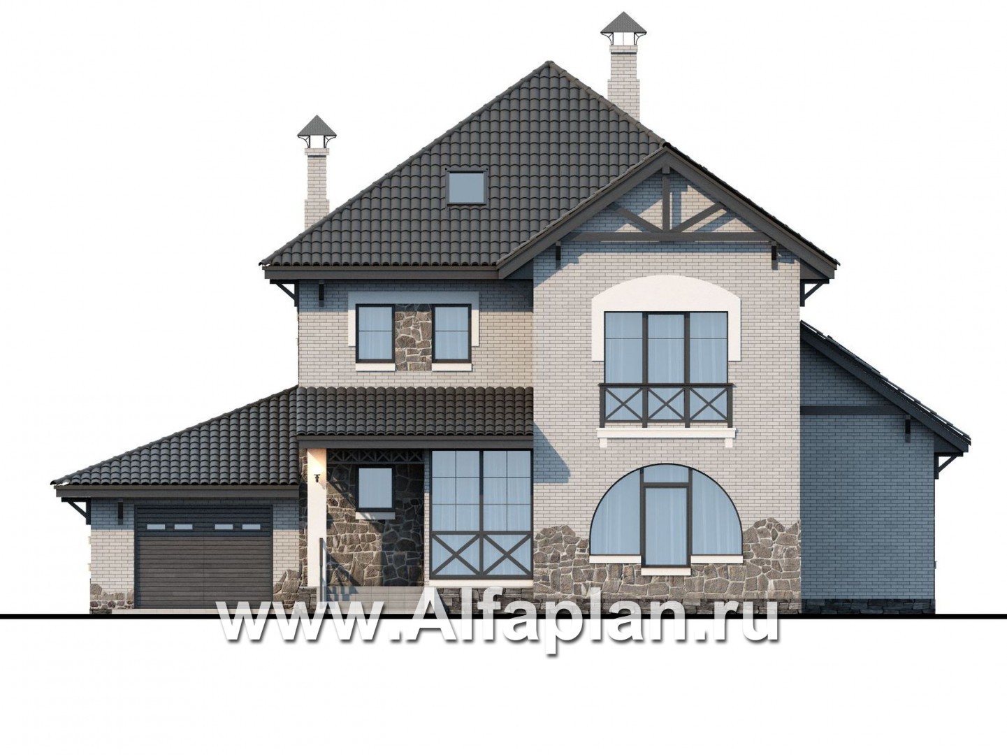 С классическим особняком этот дом из газо-, пенобетона или кирпича роднит многое. Помимо строгости, гармоничности очертаний и сдержанной цветовой гаммы, это наличие эркера с фронтоном, а также центрального входа, напоминающего портик. Наконец, о классике напоминает арочное окно, украшающее главный фасад.