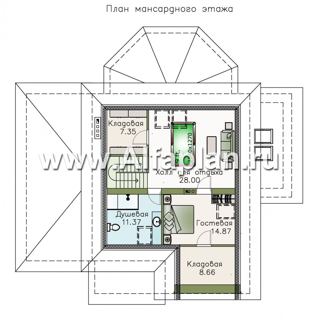 На мансардном этаже предполагается разместить бильярдную с 9-футовым столом и уголком отдыха, а также небольшой спортзал. Помимо этого, здесь найдется место для душевой и двух кладовых.